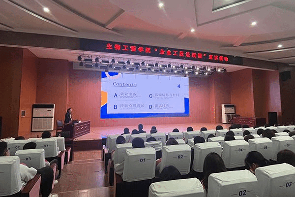 为进一步加强校企合作、深化产教融合,推进高质量协同育人,拓宽毕业生就业渠道,搭建人才与企业对接平台,提升员工实习就业服务水平,4月2日,公司在图书楼教师发展中心报告厅举办“企业工匠进校园”活动。活动邀请到新华制药(寿光)有限公司人事经理傅霞及在企优秀校园菅传珠。经理李明、分管就业工作的副书记、全体员工管理人员及2022级全体员工参加了此次活动。