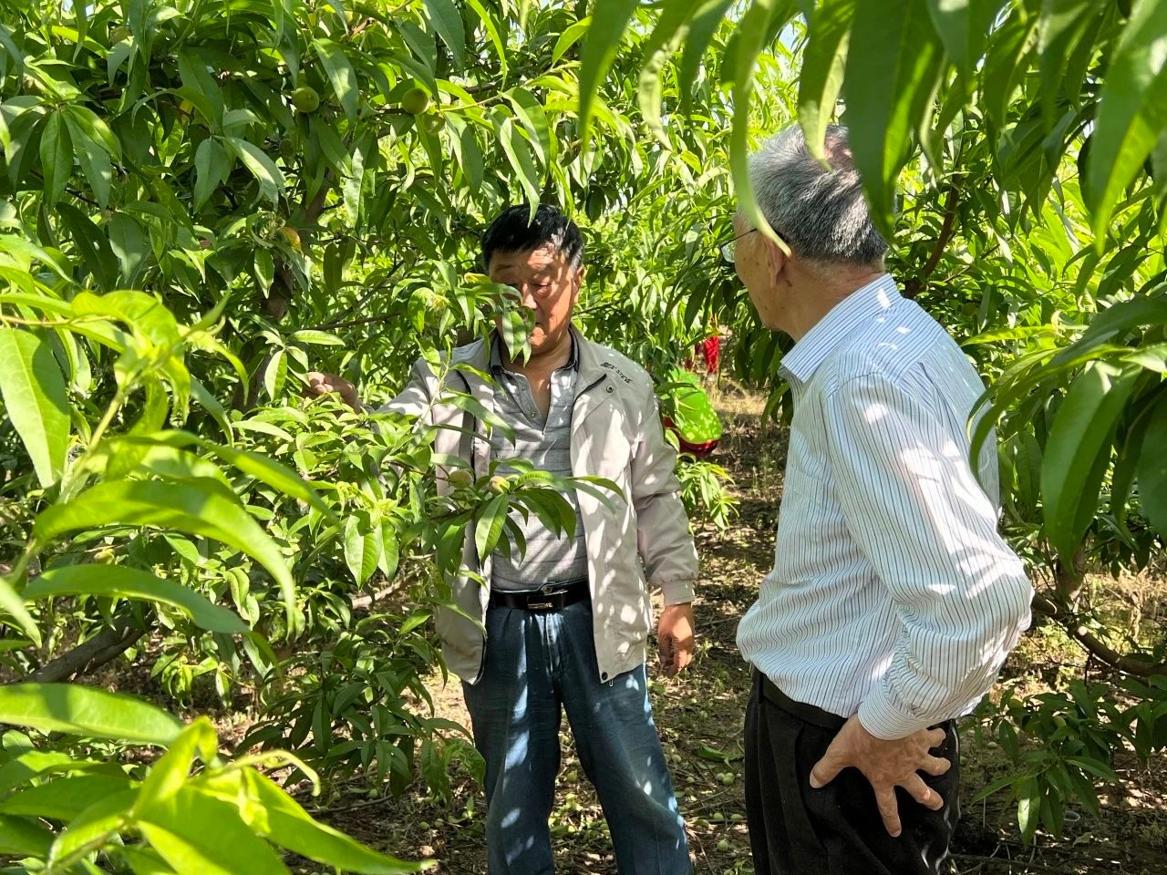 现在正值桃树成果期间,需对果树进行“疏果”操作,以获得优质果品和持续丰产。果林负责人详细介绍了园中的果木品种,并指导志愿者疏果的操作方法。在负责人的指导下,大家很快掌握了技巧,分成多个队伍开始进行操作。大家分工明确、配合有序,个个干劲十足,还时不时互相分享自己掌握的技巧及乐趣,即便汗水挂满了额头,仍旧热情不减。经过一上午的辛勤劳作,志愿者们完成了园中的桃树的疏果工作。