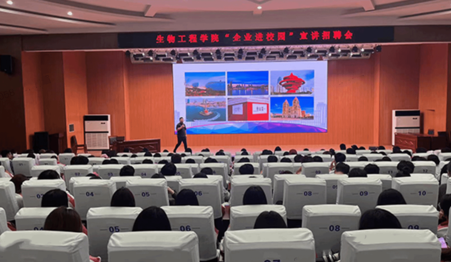为进一步贯彻教育部就业工作会议,拓宽员工实习就业渠道,提高就业质量,深化校企合作,强化协同育人机制,4月22日,公司在图书楼教师发展中心报告厅举办企业招聘宣讲会。活动邀请到鲁南制药、山东万得福生物科技有限公司、山东健源食品有限公司、青岛康普特生物科技有限公司四家企业到校参加活动。公司经理李明、全体员工管理人员以及2022级全体员工参加了此次活动。
