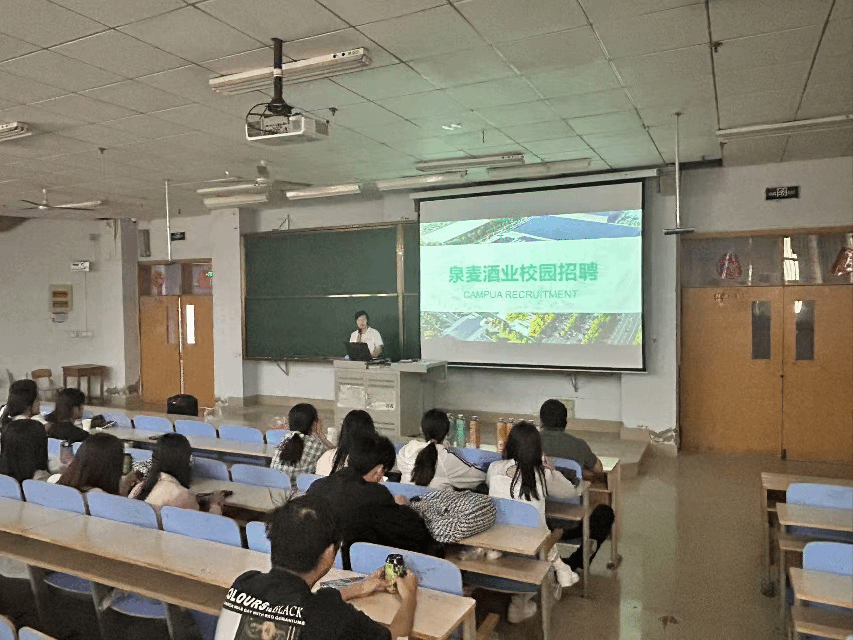 宣讲会上,作为济南市历下区重点国有控股企业,济南泉麦酒业有限公司生产部副总苏文超,人力资源总监王付英,携企业团队,向在场师生全面介绍了公司的国有属性、发展历程以及在地方经济中的重要地位。苏总监详细阐述了公司秉承的国有企业严谨务实、精益求精的核心文化理念,展示了其在精酿啤酒领域的技术传承与持续创新成果,特别是在生物工程技术应用方面的领先实践。王总重点解读了公司基于国有平台的人才发展战略,面向生物工程员工开放的优质岗位(如酿造技术研发、生产工艺管理、质量体系控制、市场营销支持等),完善且具有竞争力的薪资福利体系(包括五险一金、补充福利、职业培训等),以及为员工提供的清晰、稳定的职业成长通道。王总特别强调,泉麦酒业高度重视人才队伍建设,热忱欢迎具备扎实生物工程专业知识、热爱酿造事业的青年才俊加入,在国有企业的平台上实现个人价值与企业发展的双赢。